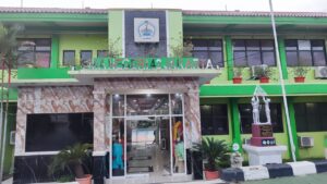 Pintu masuk menuju lobby utama sebelum masuk ke dalam sekolah, kita akan disambut dengan patung sekolah sehat nasional yang pernah kami raih pada tahun 2016 silam