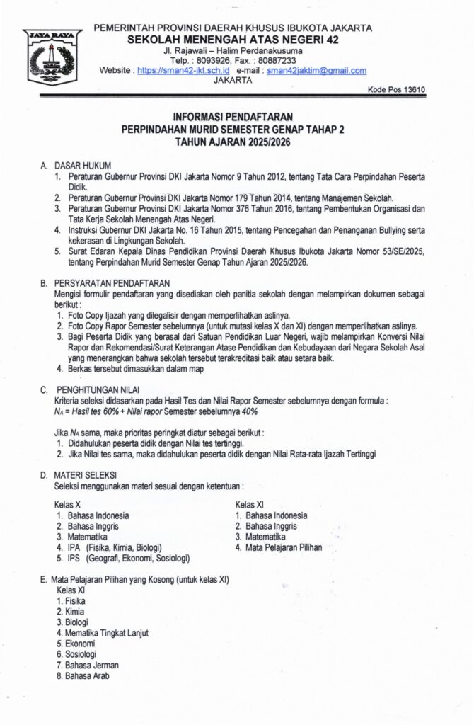 Perpindahan Murid (Tahap 2) Semester Genap Tahun Ajaran 2025/2026 Posted by Chintya 2 Februari 2026Leave a comment Cancel reply Simpan nama, email, dan situs web saya pada peramban ini untuk komentar saya berikutnya.Submit Comment Δ